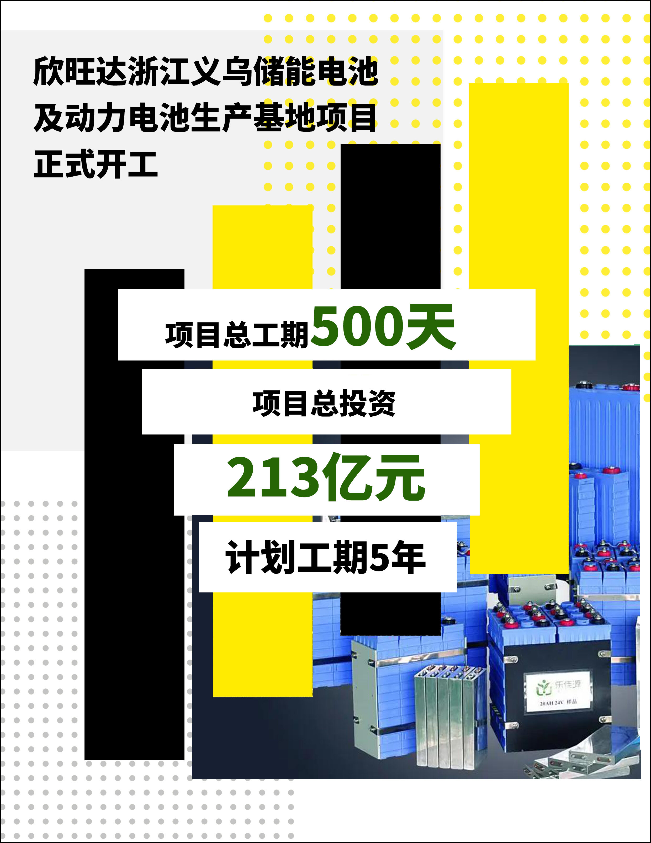 2022年12月4日上午,欣旺达义乌新能源动力电池生产基地项目开工活动在绿色动力小镇东部拓展区举行。活动以线上线下相结合的方式开展,设义乌会场和深圳会场。