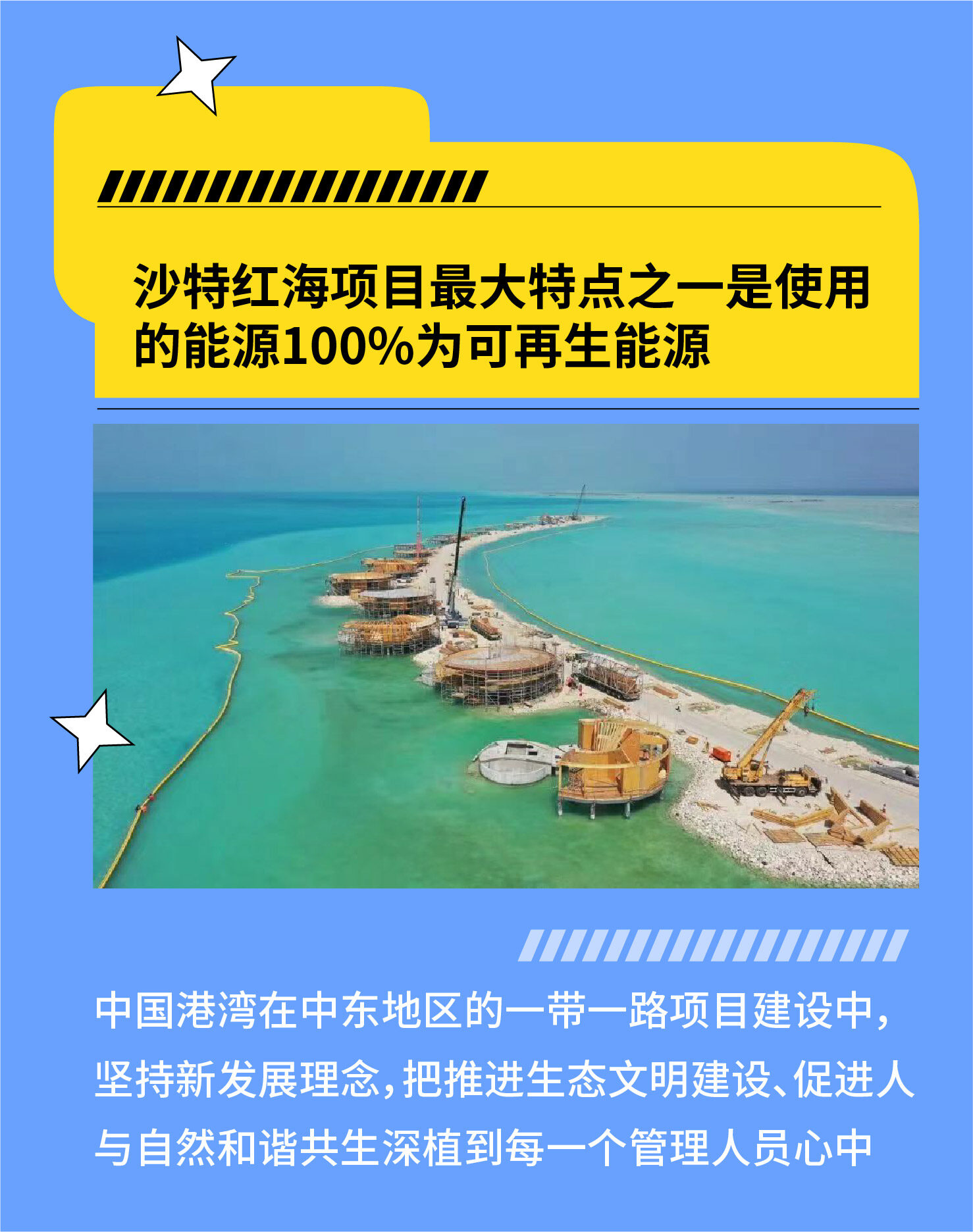 据介绍,在红海项目中,中国港湾在项目实施策划、技术方案选择、施工资源组织、现场过程控制等每一个环节中,都把落实环保措施、保护红海独特海洋生态系统当作一个重点,在高质量完成工程建设同时有效保护了当地生态环境,受到沙特业主方高度认可和称赞。(转载请注明见道网www.seetao.com)见道网工程栏目编辑/马雪