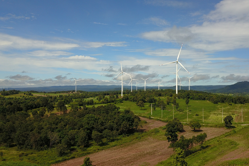 在泰国东北部连绵起伏的山丘上,32座高约120米的白色风力发电机错落排开,巨大的叶片迎着风缓慢转动。这是中国公司在泰运维的猜也蓬风电场项目的一部分。该项目由泰国电力局旗下主要新能源企业EGCO公司开发,中国金风科技提供风力发电机组,总装机容量80兆瓦。