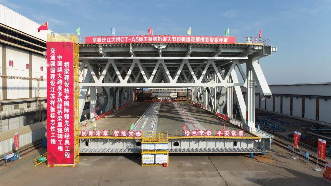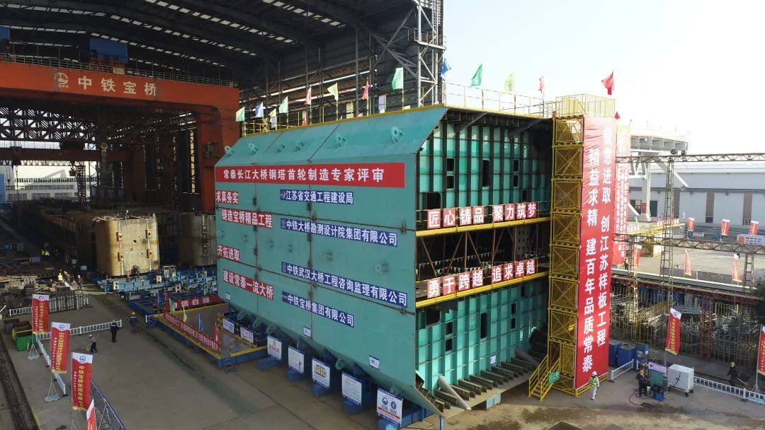 2022年12月7日,世界最大跨度公铁两用斜拉桥——常泰长江大桥(跨江段)主体工程CT-A5标主航道桥钢塔、钢桁梁首轮制造通过验收,这标志着中铁宝桥参建的大桥的生产制造开启新的篇章。