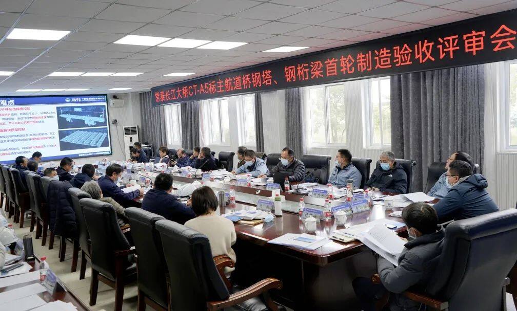 与会专家及代表听取了项目部关于常泰长江大桥主航道桥首轮钢桁梁、钢塔节段制造总结,现场查看了首轮制造实体,对项目建设给予高度评价和肯定,一致认为:首轮节段制造的资料齐全、数据翔实,满足评审要求。首轮节段制造施工组织合理、制造工艺可行、工装设备可靠,质量满足设计和《常泰长江大桥(跨江段)主体工程桥梁钢结构制造规则》的要求。可进行后续节段的批量生产。