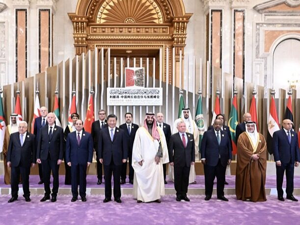 2022年12月9日下午,首届中国-海湾阿拉伯国家合作委员会峰会在利雅得阿卜杜勒阿齐兹国王国际会议中心举行。国家主席习近平和沙特王储兼首相穆罕默德、卡塔尔埃米尔塔米姆、巴林国王哈马德、科威特王储米沙勒、阿曼副首相法赫德、阿联酋富查伊拉酋长沙尔基、海合会秘书长纳伊夫出席峰会。