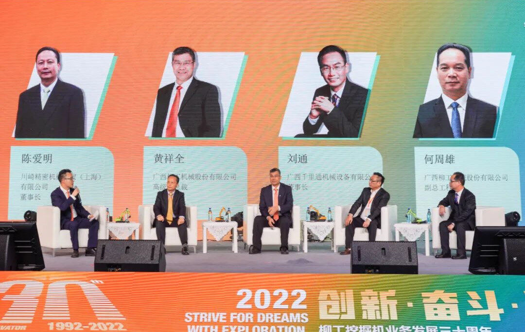 三十年风雨兼程,筚路蓝缕。川崎精密机械商贸(上海)有限公司董事长陈爱明、东平泰兴石料有限公司总经理郭金忠、广西千里通机械设备有限公司董事长刘通与广西柳工机械股份有限公司高级副总裁黄祥全,广西柳工机械股份有限公司副总工程师何周雄进行深度访谈,从柳工挖掘机起源、LDP流程构建、市场开拓等方面与现场、线上观众一同回顾柳工挖掘机业务发展以来的重大时刻,在工程机械行业下行的背景下,注入活力与信心。