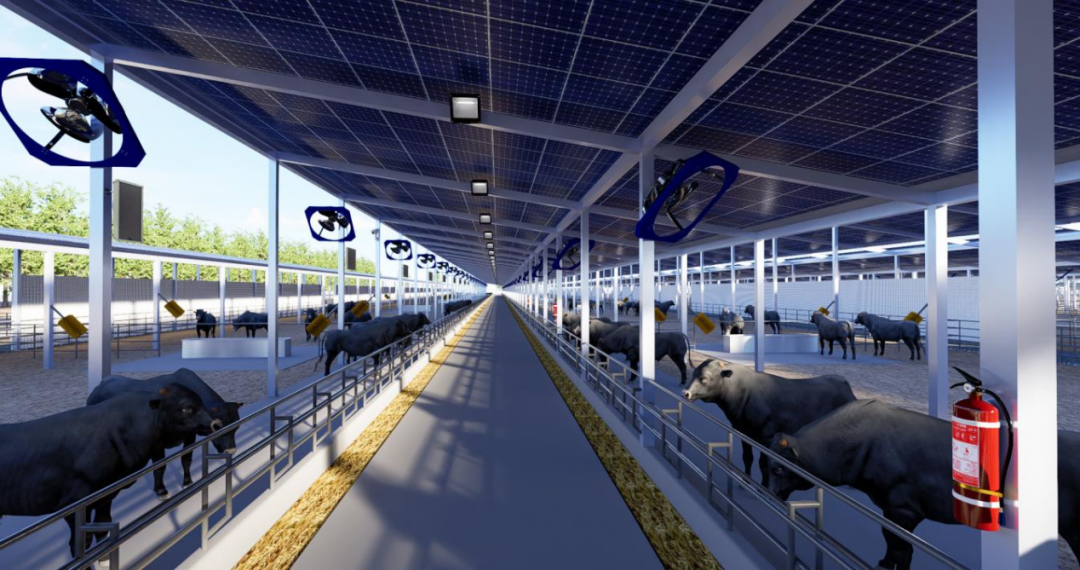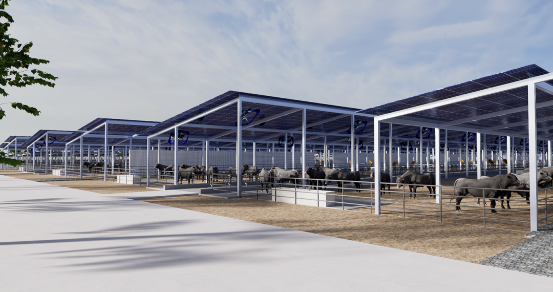 项目位于新疆维吾尔自治区可克达拉市,一期占地面积9380亩,总投资55.84亿元,建设内容包括办公楼、宿舍、餐厅、动物健保中心、育肥牛栏、示范牛栏、隔离牛栏、TMR(全混合日粮)中心、升压站及送出线路等设施。其中,育肥牛栏建设面积达150万平方米,其他设施建筑面积约6万平方米,光伏总装机容量398兆瓦。建成后,养殖规模可达存栏肉牛10万头、年出栏肉牛20万头。