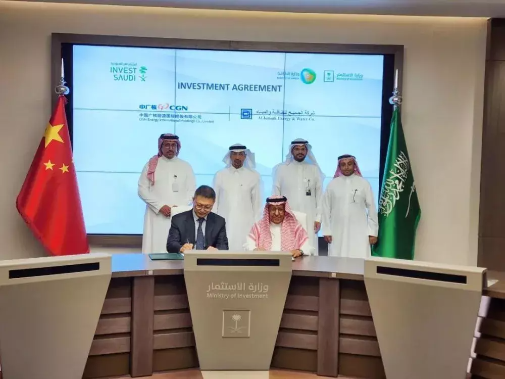 中国广核能源国际控股有限公司与AlJomaih集团在沙特利雅得签署框架合作协议将携手在沙特、老挝、孟加拉、阿塞拜疆等多国打造超1000万千瓦能源项目。根据协议,中广核能源国际和AlJomaih集团将在阿拉伯波斯湾区域、孟加拉、阿塞拜疆和亚洲其他区域共同发展多个太阳能、风力、燃气和热力发电项目,累计签约装机容量超1000万千瓦。