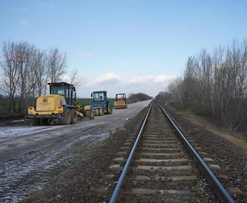 目前,匈牙利已十分寒冷,但在位于首都布达佩斯以南20多公里的匈塞铁路匈牙利段陶克绍尼站建设工地上,紧张有序的施工仍在火热进行。工程车在积雪路面上作业,工人们正在将旧钢轨拆除,待铺装的新钢轨和新轨枕已摆放在铁路沿线。