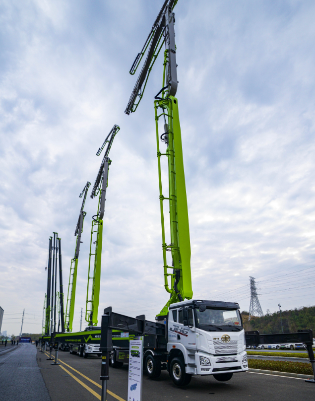 Zoomlion launched a total of 32 new energy complete machines this time, covering 9 series of engineering hoisting machinery, concrete pumping machinery, mixer trucks, aerial work machinery, earthmoving machinery, foundation construction machinery, mining machines, industrial vehicles, and agricultural machinery , including a series of industry benchmark products, such as the world's largest tonnage new energy series crane, the world's first distributed pure electric drive crawler crane, the world's first pure electric carbon fiber pump truck, the industry's first high-rise building inter-floor glass installation robot, etc. "Tidemaker" strength.