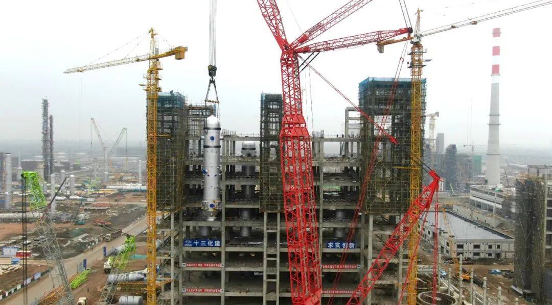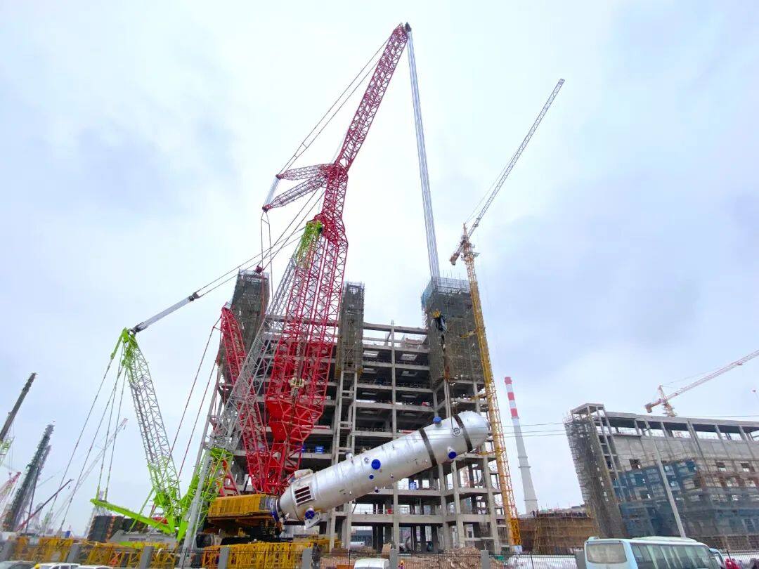 11月11日至27日,中国化学工程第十三建设有限公司采用的三一SCC20000A履带起重机在荆州完成某项目核心设备气化炉三连吊。
