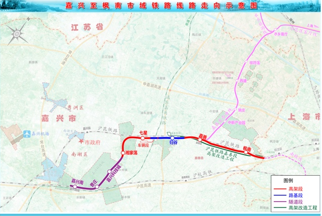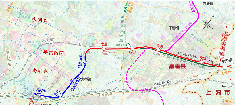 其中,嘉兴至枫南市域铁路起点位于嘉兴南站北广场,线路途经嘉兴国际商务区、南湖区、嘉善县,终点在嘉善县枫南的浙沪省界,规划与上海市域铁路南枫线衔接。