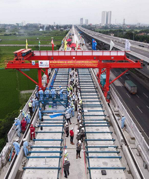 تم بنجاح وضع أول بلاطة سكة حديدية بدون صابورة على خط سكة حديد جاكرتا - باندونج فائق السرعة