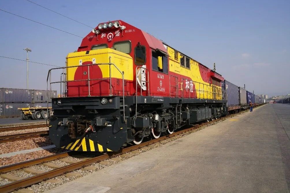 中老铁路国际货物列车经磨憨铁路口岸前往老挝