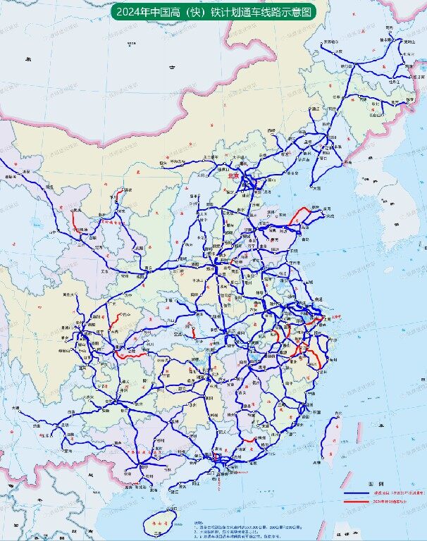 到2024年,安徽浙江多条高铁将开通,长三角地区高铁进一步加密;随着重庆至黔江高铁通车,渝厦高铁通道重庆至长沙段将全线贯通;日兰(鲁南)高铁剩余最后一段也将打通;山东半岛环线高铁全面建成。