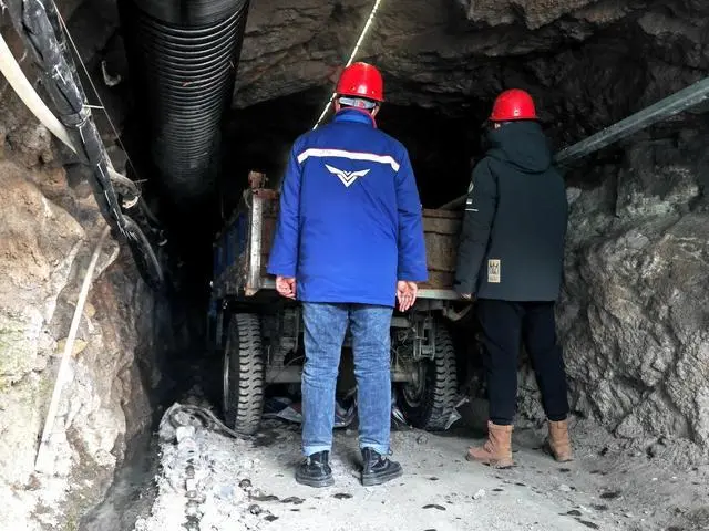 石家庄市灵寿县抽水蓄能项目施工现场工人正在检查施工场地