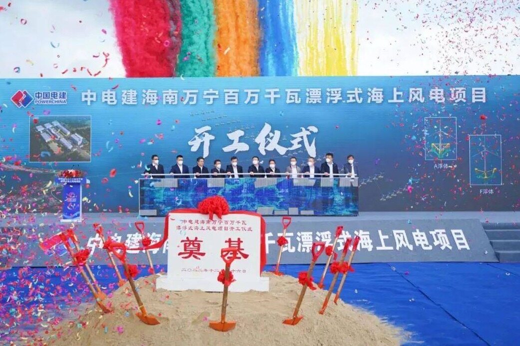 2022年12月26日,中电建海南万宁百万千瓦漂浮式海上风电项目开工仪式在万宁万城春园湾附近举行,标志着全国首个规模化深远海海上风电项目正式开工建设,该项目也是海南省海上风电“十四五”重点实施工程。万宁市委书记盖文启出席开工仪式并致辞,中电建集团党委常委王小军宣布项目开工。