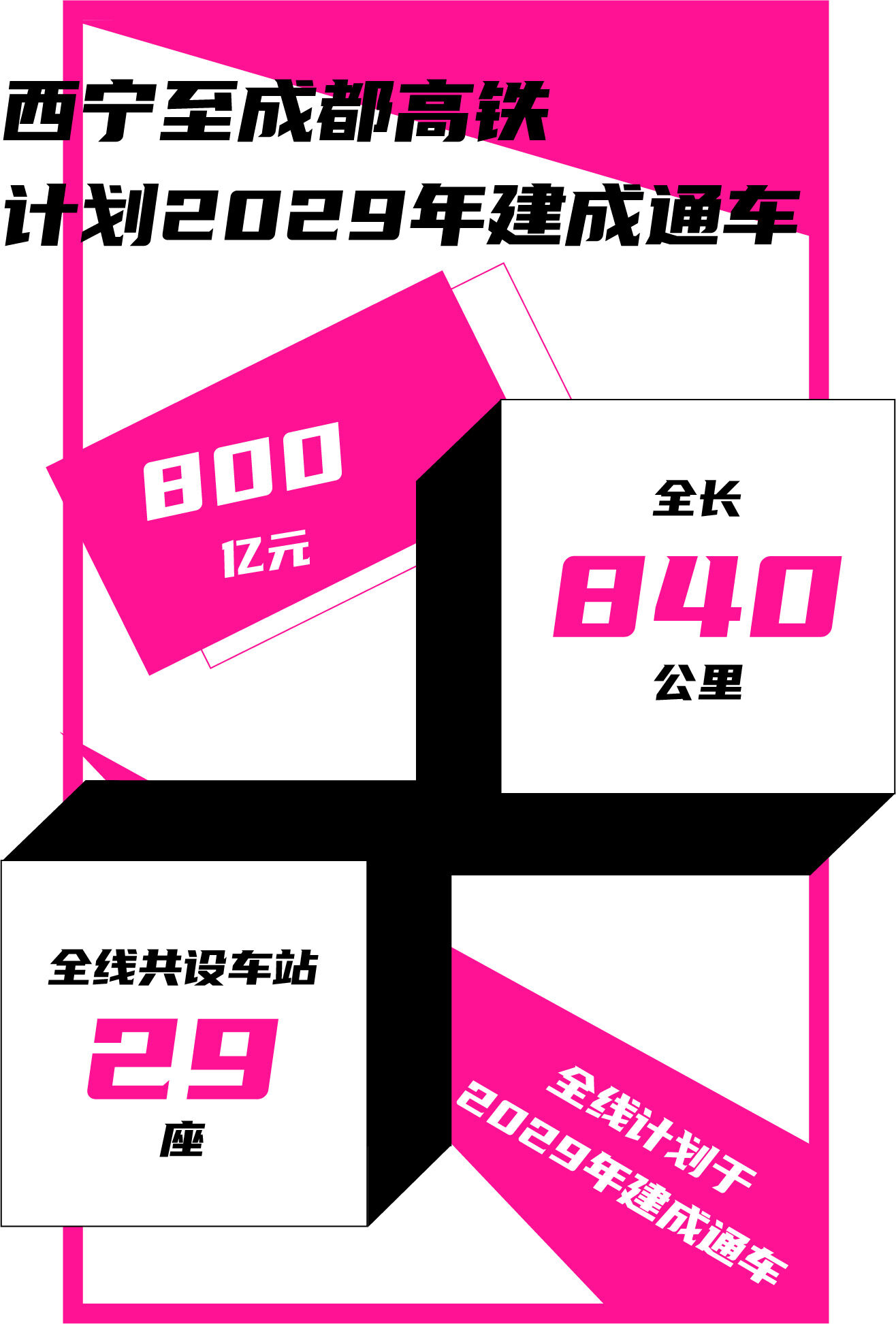 交通运输是国民经济的基础性战略产业,是重要的服务业和现代经济体系的重要组成部分,是服务人民美好生活、促进共同富裕的坚实保障。为加快构建现代综合交通运输体系,投资约800亿元新建西宁至成都高铁,西宁至成都高铁是一条纵跨青海、甘肃、四川三省的一条线路,是中兰(西)广高铁通道的组成部分。