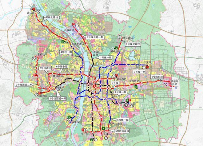 7号线一期(云塘到五里牌),7号线一期(五里牌到汽车东站):地铁7号线调整至汽车东站:7号线一期工程拟调整为自云塘站至汽车东站,主要沿韶山路和远大路敷设,线路长度约22.3km,设站21座,采用地下敷设。
