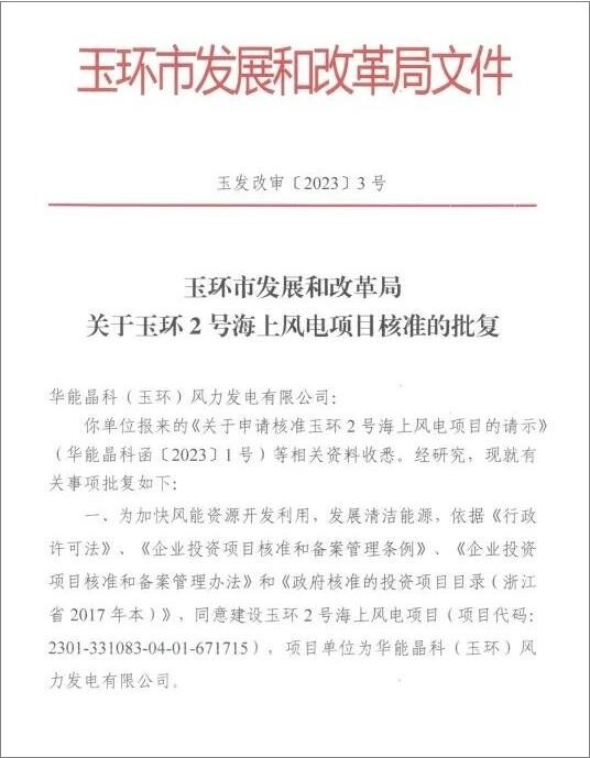 On January 5, 2023, Huaneng Yuhuan 2 Offshore Wind Power Project was officially approved. Yuhuan Branch will closely focus on the project construction goal, spare no effort to accelerate the commencement of the project, create a "competitive demonstration window for energy innovation in Jiangnan" for Zhejiang Company, and make greater contributions to Huaneng Group to accelerate the construction of a world-class enterprise.