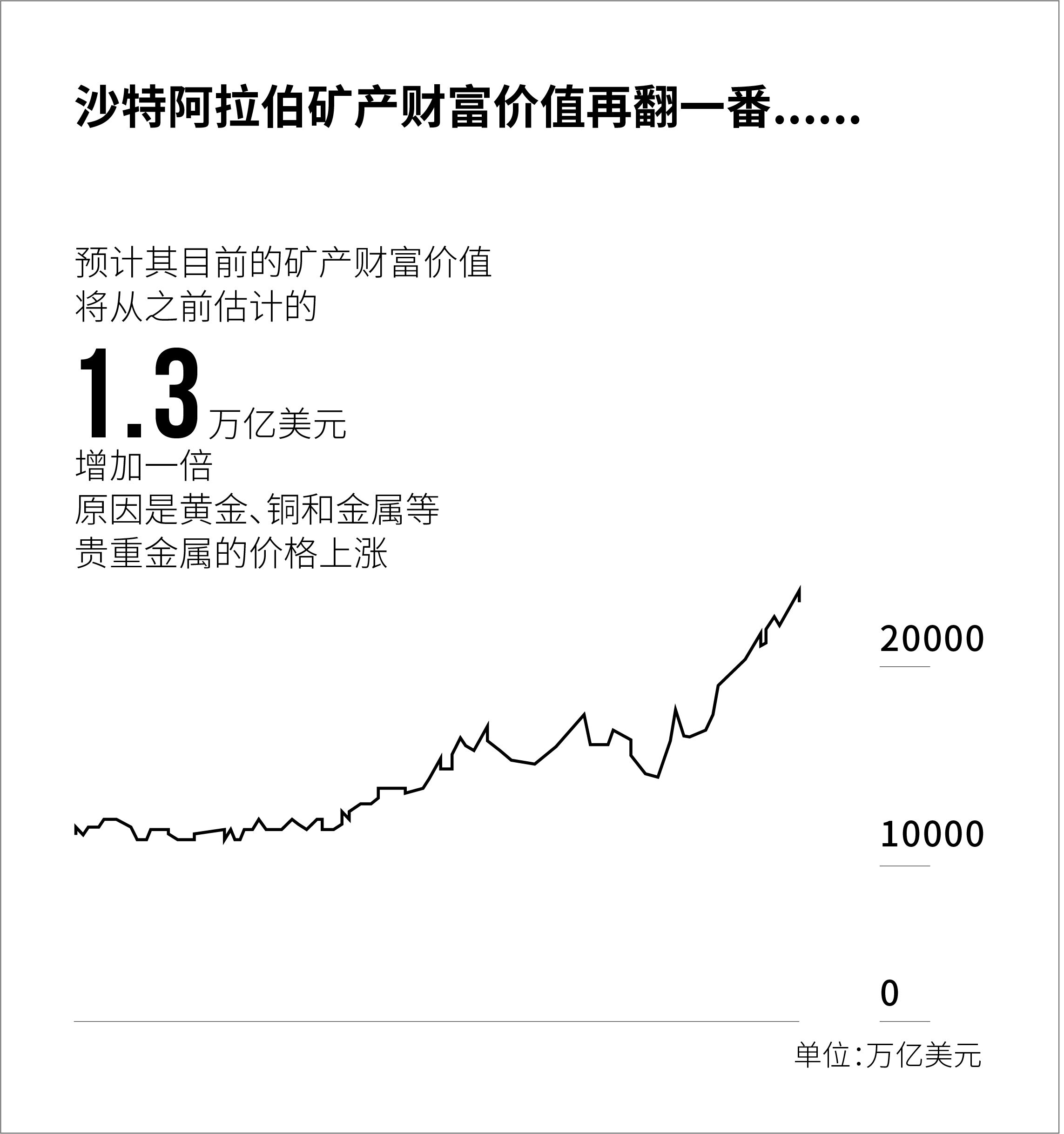 沙特阿拉伯因其健康的投资氛围而有望成为采矿业的全球领导者。沙特有望在供应推动向绿色能源过渡以实现净零碳排放目标所需的贵重矿物方面发挥核心作用。9月,沙特地质调查局首席执行官阿卜杜拉·沙姆拉尼表示,沙特阿拉伯预计其目前的矿产财富价值将从之前估计的1.3万亿美元增加一倍,原因是黄金、铜和金属等贵重金属的价格上涨。