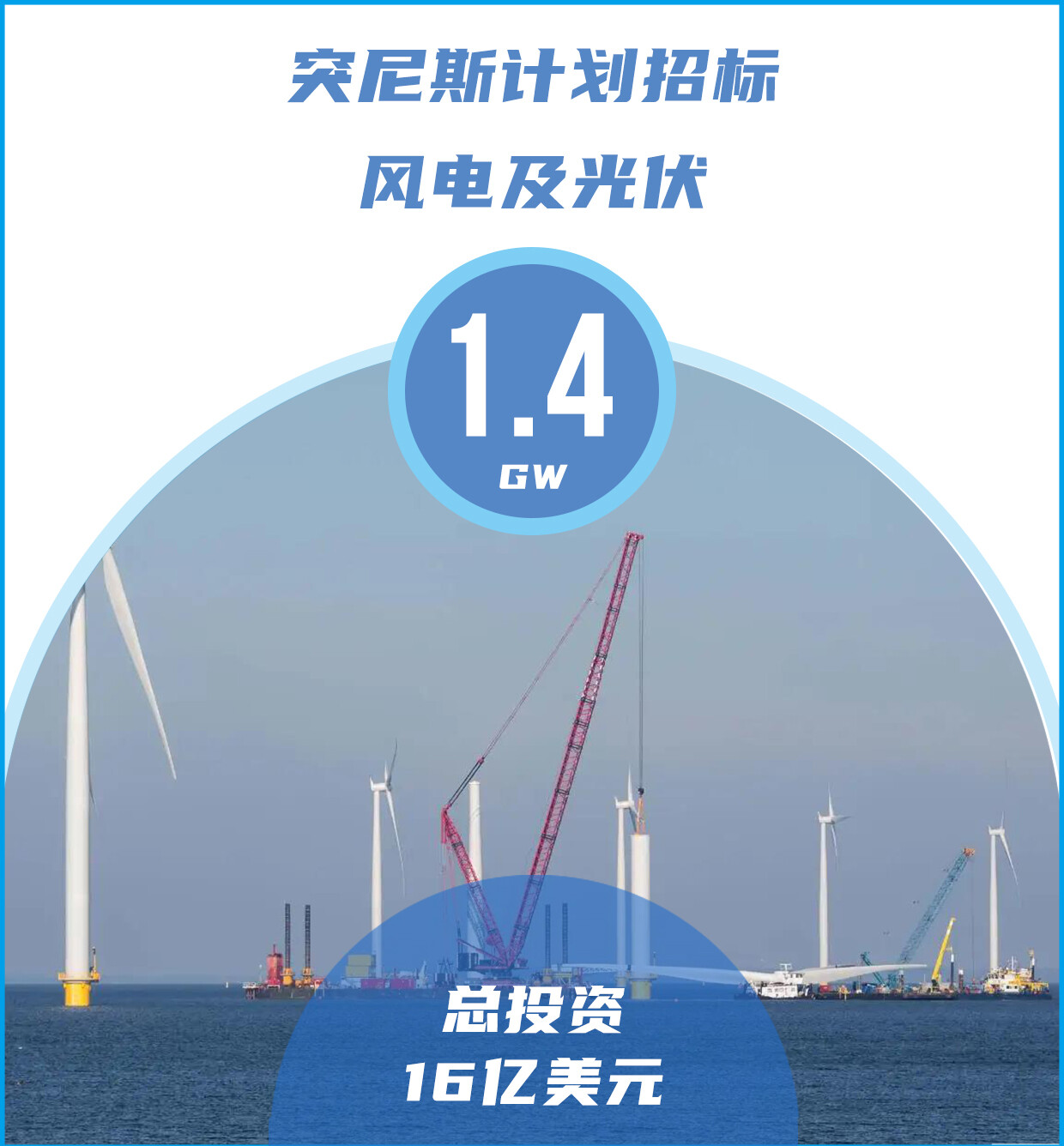 根据公告,突尼斯政府计划2023-2025年期间建设八座风力发电站,总装机容量为600MW,单项目装机容量不超过75MW,须由投资商推荐电站选址。