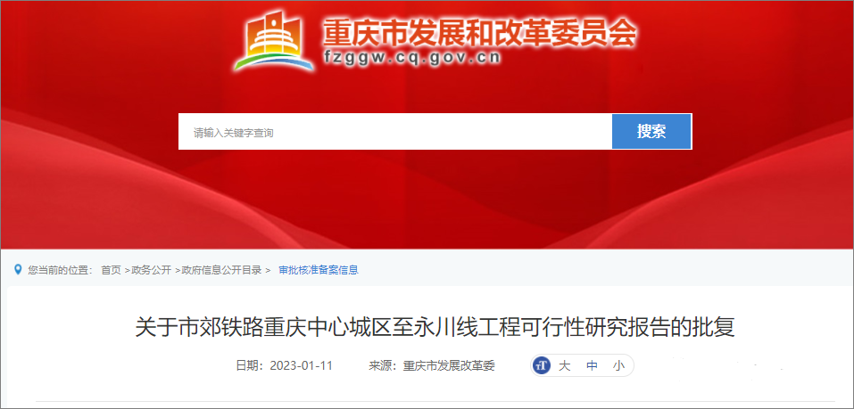 في 11 يناير 2023 ، وافقت لجنة التنمية والإصلاح في بلدية تشونغتشينغ رسميًا على "تقرير دراسة الجدوى حول مشروع خط سكة حديد الضواحي بمدينة تشونغتشينغ المركزية - يونغتشوان" و "تقرير دراسة جدوى مشروع سكة حديد الضواحي بمدينة تشونغتشينغ المركزية وخط نانتشوان". من المتوقع أن يبدأ بناء المشروع رسميًا في غضون عام 2023 ، مع فترة بناء مخطط لها مدتها 5 سنوات.