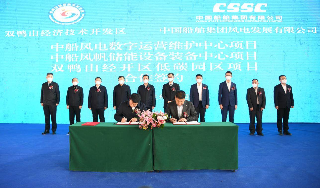 في حفل التوقيع ، وقعت منطقة Shuangyashan للتنمية الاقتصادية والتكنولوجية وشركة CSSC Haizhuang Wind Power Co.، Ltd. اتفاقية تعاون لدخول مجمع العلوم والتكنولوجيا. مشروع قاعدة معدات ومعدات الطاقة ومنطقة Shuangyashan الاقتصادية والتنمية التكنولوجية منخفضة الكربون اتفاقية تعاون المشروع ، وقعت مقاطعة Jixian اتفاقية تعاون مع مشروع طاقة الرياح CSSC Wind Power Jixian County 200000 كيلووات ، وقعت مقاطعة Youyi صداقة CSSC لطاقة الرياح مع CSSC Wind Power County 300000 كيلووات اتفاقية تعاون مشروع طاقة الرياح. القيمة الإجمالية للعقد 4.3 مليار يوان.