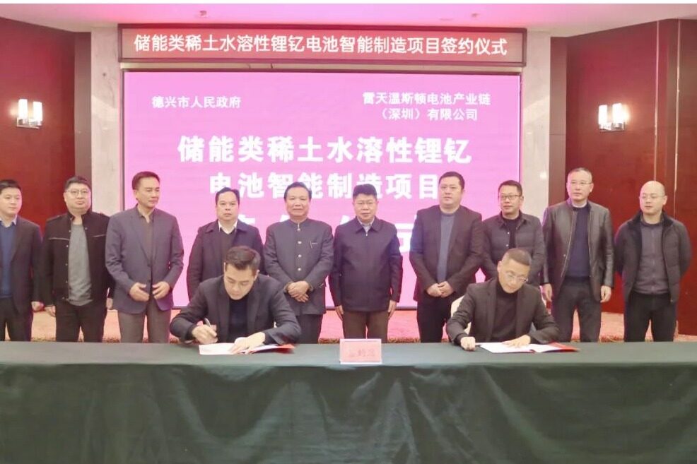 On January 11, 2023, our city and Leitian Winston Battery Industry Chain Shenzhen Co., Ltd. held a signing ceremony for the smart manufacturing project of energy storage rare earth water-soluble lithium-yttrium batteries at Yinlu Hotel. Yang Xiufu, Secretary of the Municipal Party Committee, Zhao Jianying, Member of the Standing Committee of the Municipal Party Committee and Director of the United Front Work Department, Hong Zonglu, Secretary of the Party Working Committee of Dexing High-tech Zone, Liu Debo, Director of the Management Committee, Zhong Xinjia, Chief Scientist of Leitian Winston Battery Industry Chain Shenzhen Co., Ltd., Chairman of the Company Jinshan, President of the Company Chen Rongbin attended the event. The event was hosted by Zhao Jianying.