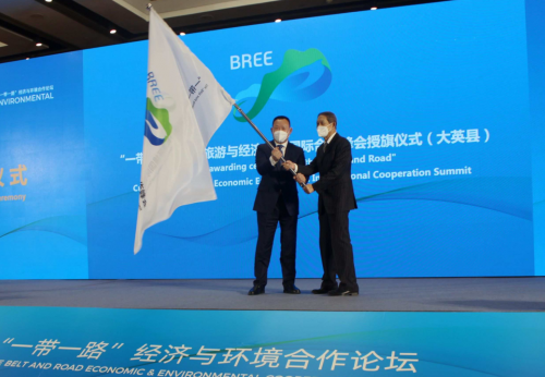 据悉,中华环保联合会一带一路生态产业合作工作委员会与大英县达成战略合作,2023年9月将在四川省遂宁市大英县召开“一带一路文化旅游与经济环境国际合作峰会”,论坛现场中华环保联合会主席孙晓华与大英县县委书记胡铭超举行了授旗仪式。