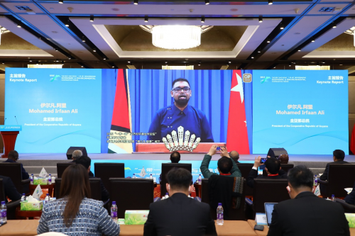 圭亚那总统伊尔凡·阿里以视频形式作主旨报告