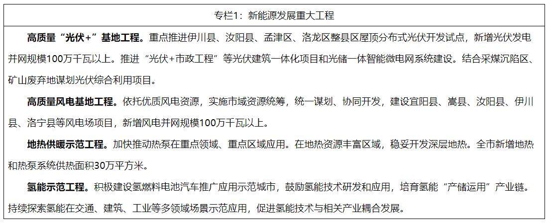 风电产业上,发展高质量风电基地工程,建设宜阳县、嵩县、汝阳县、伊川县、洛宁县等风电场项目,新增风电并网规模100万千瓦以上。关键词:基建、基础设施建设、国内工程新闻、规划投资
