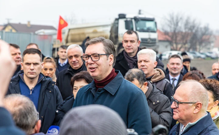 الرئيس الصربي فوتشيتش يتفقد موقع بناء الجزء الحدودي نوفي ساد-سوبوتيتسا للسكك الحديدية المجرية الصربية بالقرب من نوفي ساد ، وهي مدينة في شمال صربيا