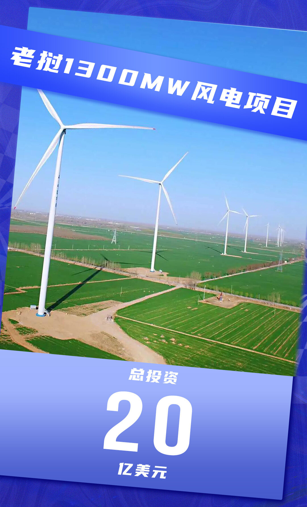 该项目2个风场分别位于老挝中南部老挝甘蒙省博拉帕县及老挝中部波里坎塞省勘格县,靠近越老边境,2个风场的总装机容量为1300MW,总投资约20亿美元。关键词:一带一路工程、国际项目