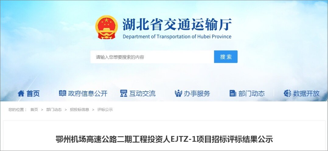 近日,见道网记者从省交通厅官网获悉,投资65亿元、双向六车道、设计速度120公里/小时的鄂州机场高速二期工程投资人EJTZ-1项目招标评标结果公示已发布,标志着该工程又推进了一大步。