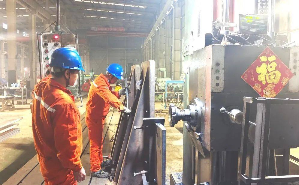 春节期间,机船公司机械厂韩华与谢鹏师徒二人主动加班加点,齐心协力抢进度、赶工期,进行岷江龙溪口项目桥面面板坡口工件的加工,确保1月底如期交货。安全科科长王磊带头值班,进行厂内全天候安全巡查,在重点区域排除隐患、落实整改,确保节日期间安全文明生产。
