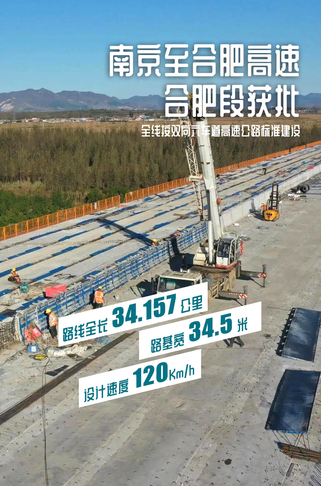 强国建设交通先行,为满足交通需求,高速公路设加快推进。安徽省交通运输厅发布关于南京至合肥高速公路合肥段初步设计的批复。据了解,南京至合肥高速公路合肥段,路线全长约34.157公里。全线设特大桥、大桥14座;中桥13座;长隧道1座;设烔炀(枢纽)、烔炀南、中垾、夏阁南(枢纽)、夏阁南、夏阁东(枢纽)等6处互通立交;同步建设匝道收费站3处、养护工区1处等必要的交通工程及沿线设施。全线按双向六车道高速公路标准建设,设计速度采用120公里/小时,路基宽34.5米,采用沥青混凝土路面。