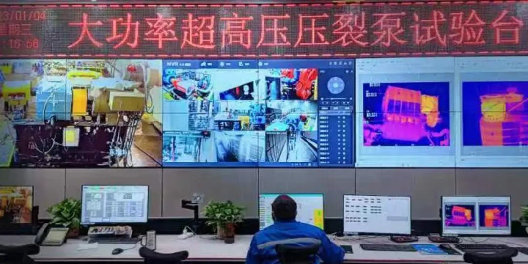 QPI-6000压裂泵在厂内试验时,使用去年投用的大功率超高压压裂泵试验台进行,在满足长时间、超高压、大功率试验的工况下,加入了红外探头、噪音采集器、压力传感器、温度传感器等一系列数字化工具与可视化系统,使压裂泵的运行耐力、动力峰值、压力极限等本质能力能够在试验台上进行实时数据采集并进行自主分析,形成运行曲线,使产品的各项性能跳出理论纸面,更加贴近实际使用场景。