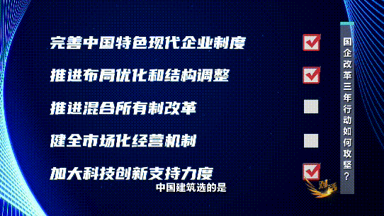 主持人:我们接下来从我们国企改革三年行动当中找出了五项重要的任务,请嘉宾从五大任务当中来选三项,来,请亮题板。
