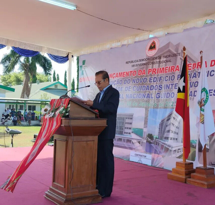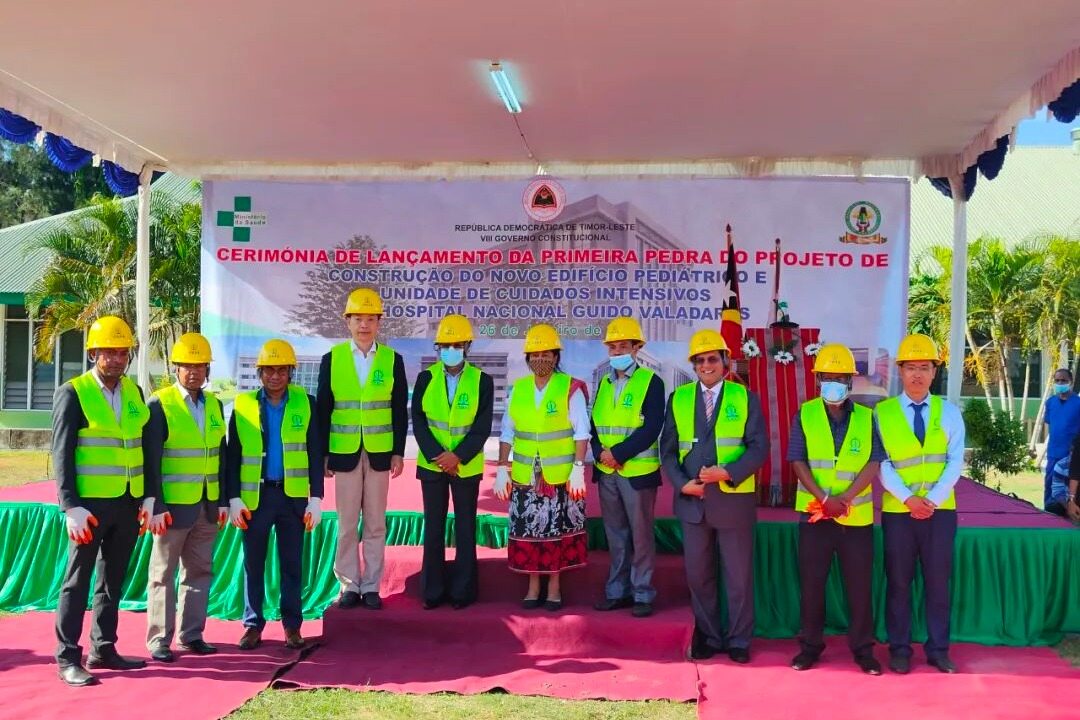 Recently, the groundbreaking ceremony of the Pediatrics and Intensive Care Building Project of Guido Valadares National Hospital in East Timor, undertaken by China Civil Engineering, was held. Taur Matan Ruak, Prime Minister of Timor-Leste, Geng Xiewei, Commercial Counselor of China in Timor-Leste, Mariya, Minister of Health of Timor-Leste, officials of relevant ministries and commissions of Timor-Leste, representatives of WHO, officials of the Prime Minister’s Office of Timor-Leste, representatives of the National Defense Forces and Police, China Civil engineering representatives attended the ceremony and laid the foundation stone for the project.