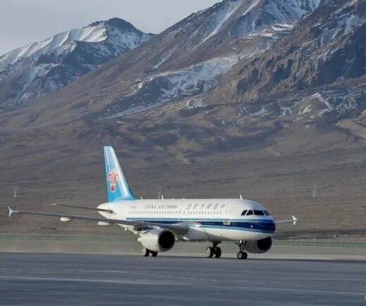 2022年12月23日,塔什库尔干红其拉甫机场,首航航班平稳落地后在跑道上滑行