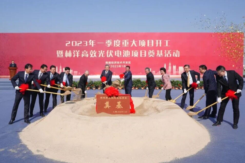 2023年1月30日,江苏南通经济技术开发区一季度重大项目开工暨林洋高效光伏电池项目奠基活动正式举行。