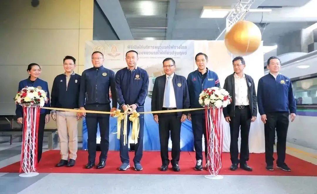 近日,泰国国家铁路局在邦苏车站举行了盛大开行仪式,泰国曼谷邦苏中央火车站首趟列车开行。该班次列车由中国中车研制的CDA5B1型机车担纲牵引。泰国交通部长萨基耶姆·奇乔布Saksayam Chidchob亲临现场,为新站首日开行剪彩。