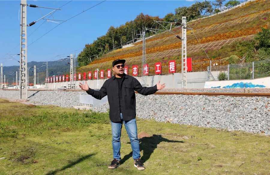 从老挝回国的旅客周海军说,在中老铁路的列车上听老挝歌手歌唱一带一路太有意义了,他决定关注这位歌手。