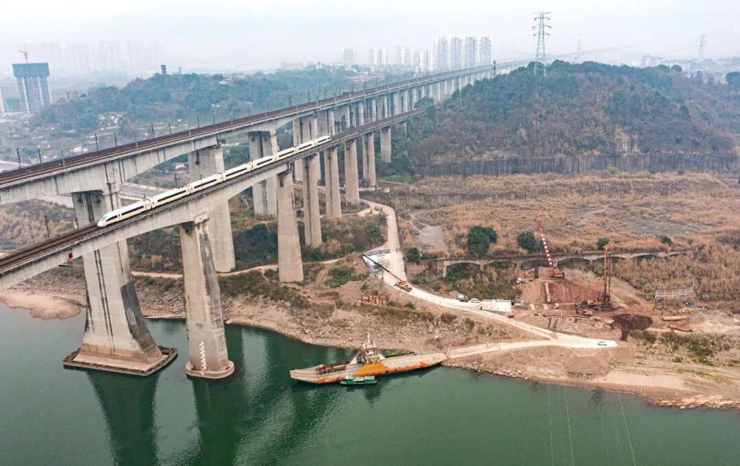 Since the reform and development, the driving force of the Chengdu-Chongqing region for the economic development of the west has been continuously strengthened. At 9 am on February 7, 2023, at the Ertang Wharf at the wellhead of the Shapingba District, drilling, cleaning, lowering of the reinforcement cage, and concrete pouring... Excavators are working in an orderly manner, and a pile foundation with a diameter of 2.8 meters and a length of 30 meters is going deep into the ground little by little. This is the construction site of the Jingkou Jialing River Bridge on the Chengdu-Chongqing Middle Line High-speed Railway.