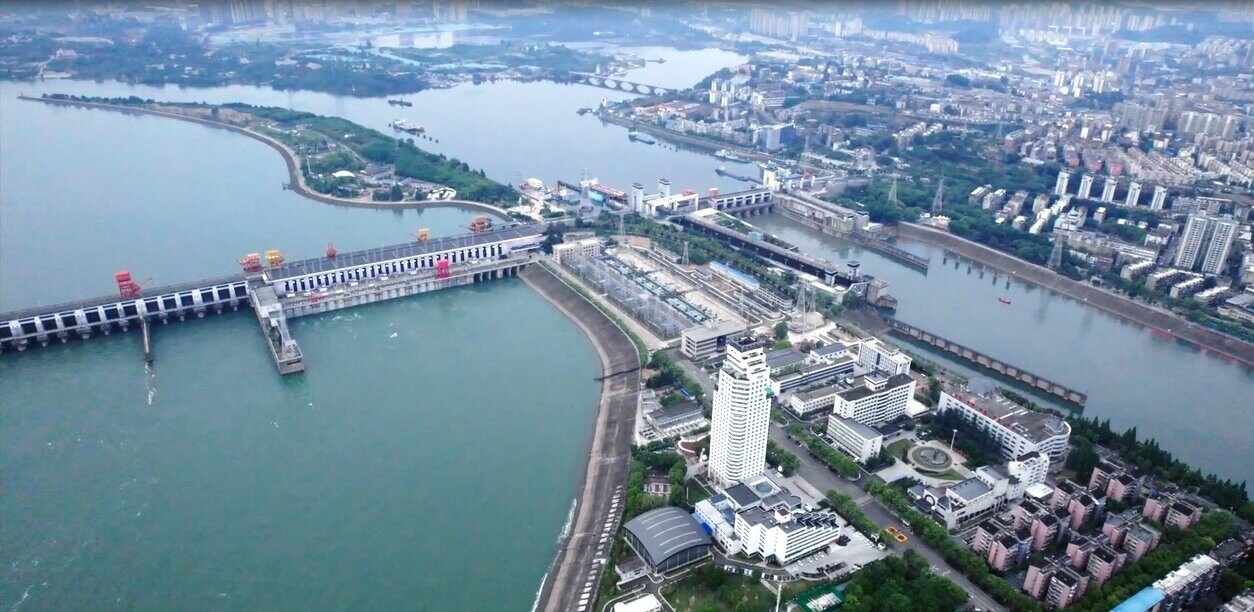 葛洲坝水电站位于湖北省宜昌市,是长江干流上第一座大型水电站,有万里长江第一坝之称。共装有21台轴流转桨式水轮发电机组,其中2台单机容量170兆瓦,其11.3米的转轮直径至今仍为全球最大;19台单机容量125兆瓦。电站2台170兆瓦、6台125兆瓦水电机组由东方电气自主研制。