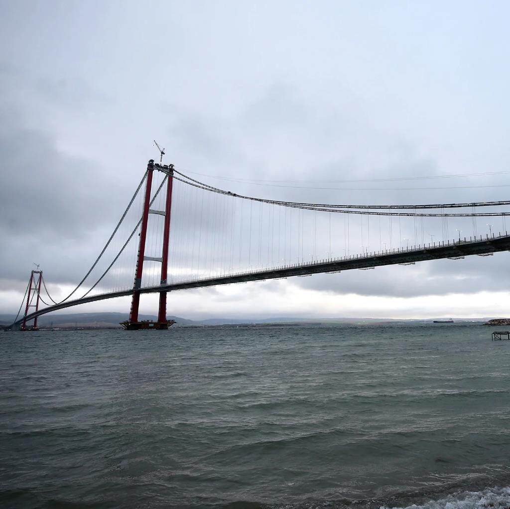 据悉,位于土耳其西部恰纳卡莱省的1915恰纳卡莱大桥,2022年3月通车,跨越达达尼尔海峡,连接欧洲岸的格里波鲁和亚洲岸的拉普斯基,主跨长2023米,是世界上最大的跨径悬索桥。