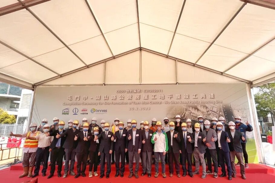 2023年2月20日,由中国土木联合中铁十五局承建的香港屯门中工地平整及基础设施第一期——湖山路项目举行第一阶段公营房屋土地平整竣工典礼。香港特区政府土木工程拓展署土木工程处副处长李康年、房屋署总结构工程师许秀娟,香港中国企业协会副会长兼总裁于晓,宾尼斯工程顾问有限公司董事宋雁,中国土木港澳分公司代表出席活动。