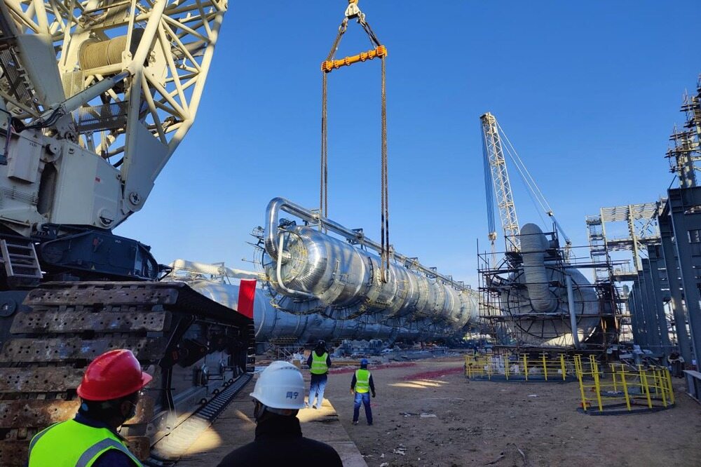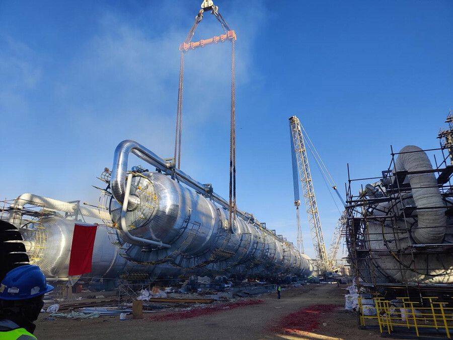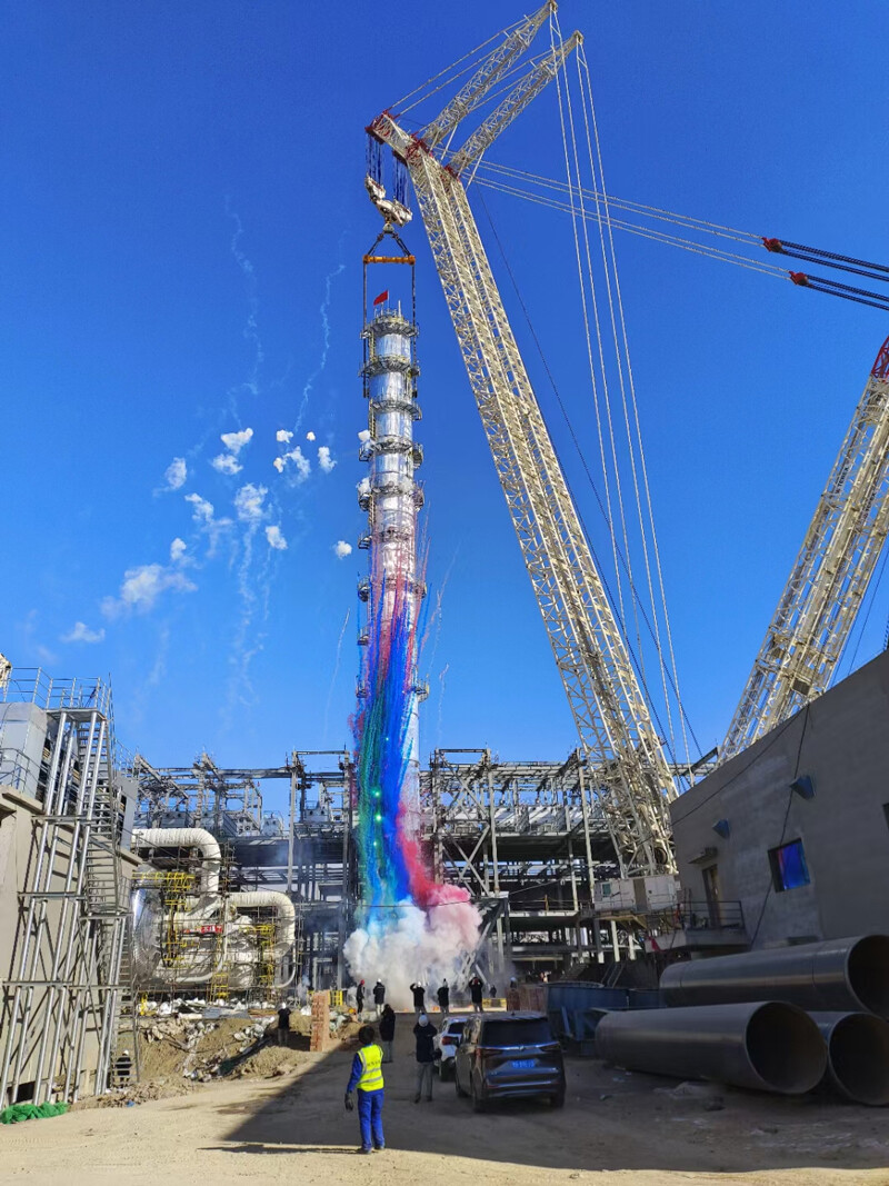 近日,陕西化建设备吊装运输公司顺利完成内蒙古弘元能源科技高纯晶硅(一期)项目精馏装置首台大型塔器——精馏3级塔吊装工作,吹响了现场“大干快干”的号角。