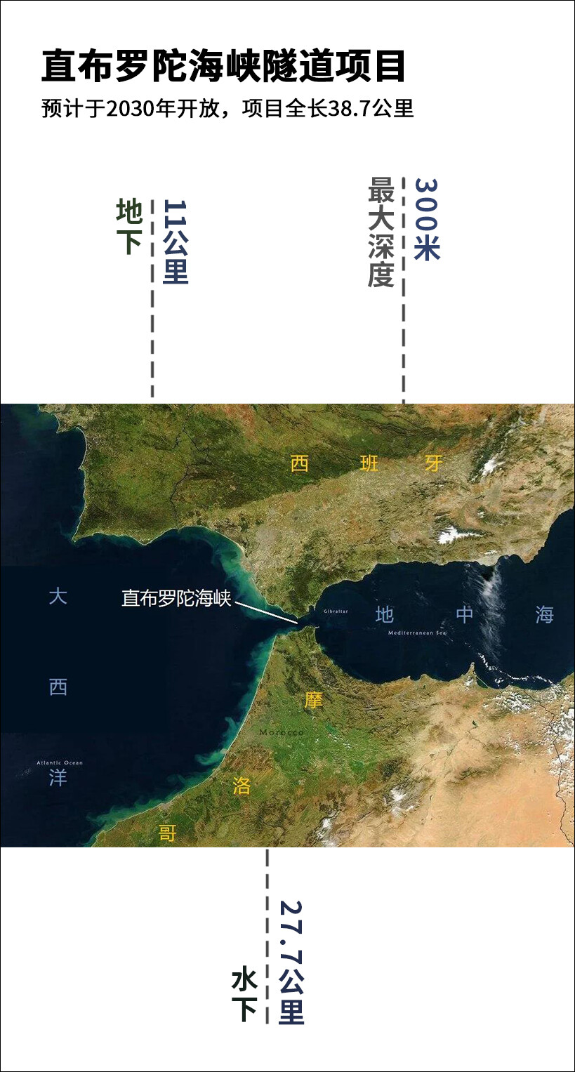 这条隧道最早是在1979年的一份联合声明中提出的。40年来,外交和政治上的分歧推迟了这条38公里长的隧道的施工。随着两国渴望建立更牢固的友谊,从摩洛哥丹吉尔到西班牙塔里法的海底隧道正在成为现实。