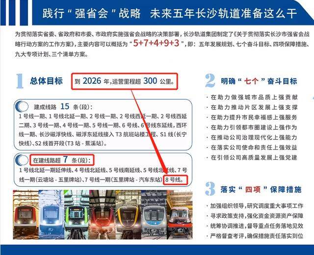2022年年底,长沙地铁官微放出一个重磅消息:到2026年,长沙地铁运营里程超300公里,在建线路超7条(段),其中就包含了8号线。这就意味着,地铁8号线有望在2026年前启动建设。关键词:基建、基础设施建设、国内工程新闻、规划投资