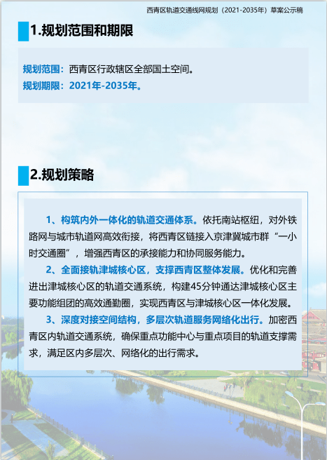 目前,中国的城市地铁线路建设数量众多,都有很大的发展潜力。2023年2月24日,《西青区轨道交通线网规划(2021—2035年)》草案公示,其中明确,西青区依托南站枢纽,链接入京津冀城市群一小时交通圈,构建45分钟通达津城核心区主要功能组团的高效通勤圈,实现西青区与津城核心区一体化发展。