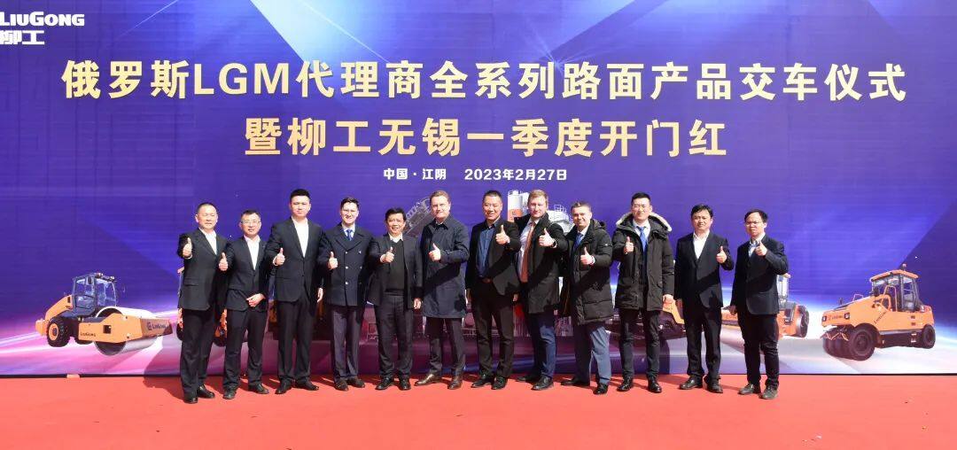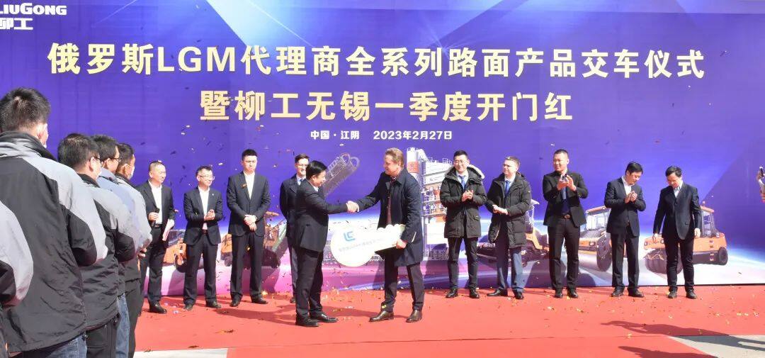 On February 27, more than 100 units of LiuGong full-line road equipment left Jiangyin, Jiangsu Province, for Russia. Mr. Виктор Поддубицкий, CEO of LGM, LiuGong’s dealer in Russia, Mr. Tan Zuozhou, General Manager of LiuGong Wuxi Road Equipment Co., Ltd., as well as the other representatives attended the ceremony.